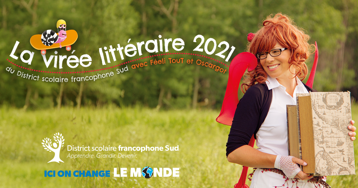 Dieppe, le 21 juin 2021 – Les élèves de la maternelle à la cinquième année du District scolaire francophone Sud (DSFS) sont invités à faire la Virée littéraire avec Féeli Tout et Oscargot pendant les vacances estivales. Le lancement de cette nouvelle initiative du DSFS qui a pour but de promouvoir la lecture chez les jeunes a lieu aujourd’hui dans les écoles participantes du district.