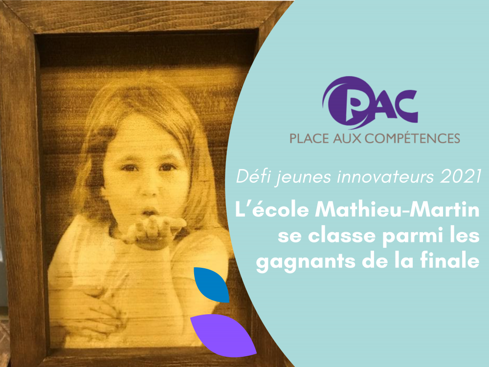 ExpiréDieppe, le 27 mai 2021 – L’école Mathieu-Martin, de Dieppe, se classe parmi les gagnants du Défi jeunes innovateurs 2021 - édition virtuelle, présenté à l’échelle de la province par l’organisme Place aux compétences (PAC) en remportant la somme de 500 $ par tirage au sort. Une cagnotte qui permettra aux élèves de cette école d’investir dans leur projet Joie en bois et de poursuivre leur route sur le chemin de l’innovation et de l’entrepreneuriat.