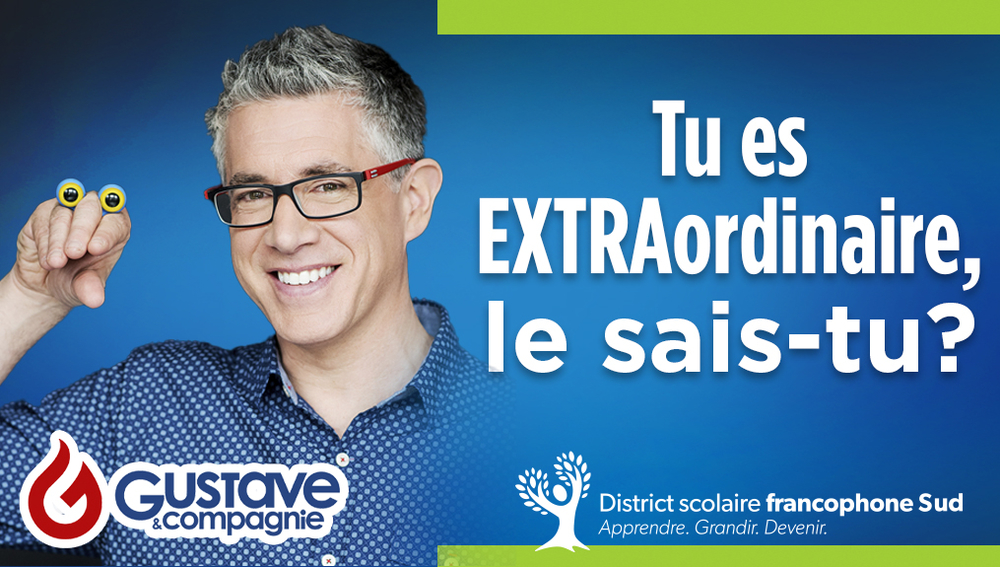Dieppe, le 12 mai 2020 – L’animateur et conférencier québécois Stéphane Paradis, bien connu grâce aux messages inspirants de son inséparable ami Gustave, se joint à l’aventure des Chroniques ludiques du District scolaire francophone Sud (DSFS) pour présenter de nouvelles capsules vidéo taillées sur mesure pour les élèves du district âgés de 7 à 12 ans, mais qui sauront plaire à un large public.